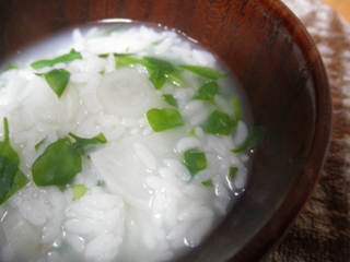 「焼かないの~?焼きおにぎりにした方が美味しいと思うけど~。」