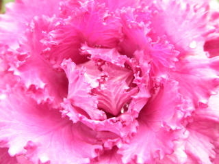 植え込みの葉牡丹に 雨粒がキラキラ輝いてました